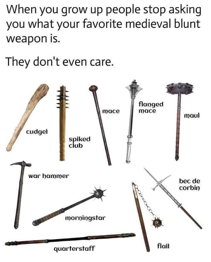 “In other words, I’m going full nerd on y’all” — Thanks for this piece! It made the little high schooler who would fangirl about maces excited to see someone else who loves medieval and fantasy weapons :)